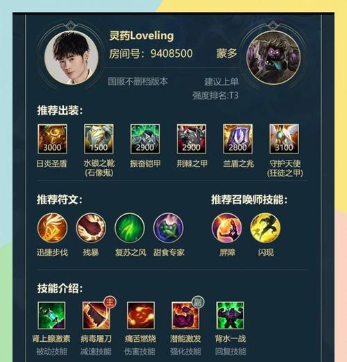在《英雄联盟》这个竞技游戏中,上单位置是承担着坦克、肉盾和发育输出等多重角色的重要位置。而作为上单选手,掌握合适的出装攻略对于取得胜利来说至关重要。本文将为大家带来最新的战神上单出装攻略,包括最适合当前版本的出装推荐、符文搭配以及一些实用的战术技巧,助你成为无敌上单!