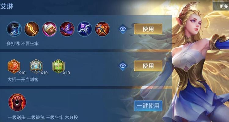 王者荣耀中的英雄角色艾琳在前期作战中有着非常出色的表现,而正确的铭文和出装选择对于她的发挥至关重要。本文将为大家介绍最新的艾琳前期铭文出装攻略,帮助玩家们更好地利用她的优势,提高胜率。