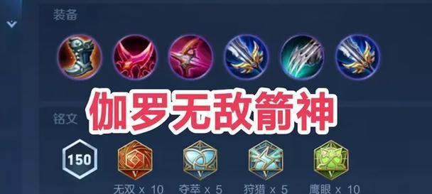 对于伽罗这种物理输出英雄,可以选择使用铭文“狩猎”、“破败”等增加输出和削弱敌方防御的铭文。同时,也可以使用“鹰眼”等提高命中率和攻速的铭文。