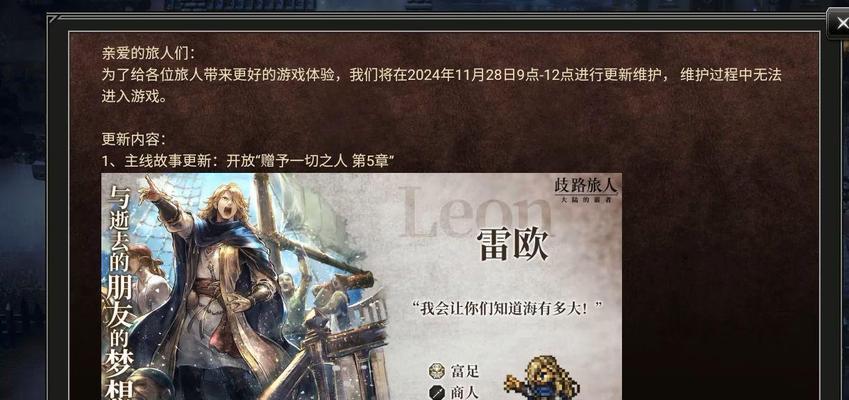 作为一款备受玩家期待的角色扮演游戏,《八方旅人:大陆的霸者》一直以来都备受瞩目。而如今,游戏的最新情报也终于要公开啦!在明天,我们就能够抢先看到游戏内的惊喜不断,感受到这款游戏的精彩之处。让我们一起来看看这份最新情报中会涉及到哪些内容吧!