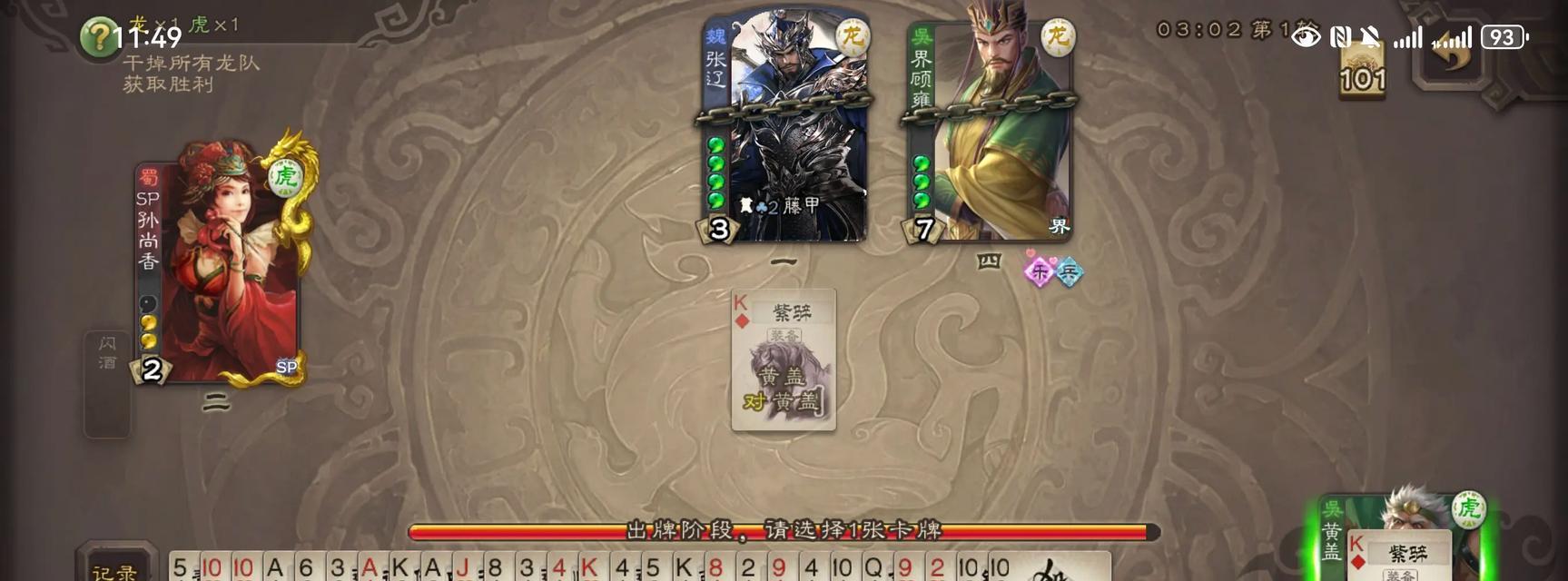 除了基本技能外,黄盖还有一些进阶技巧可以提高其战斗力。比如善于利用牌堆控制卡牌种类,以更好地使用奇策技能。